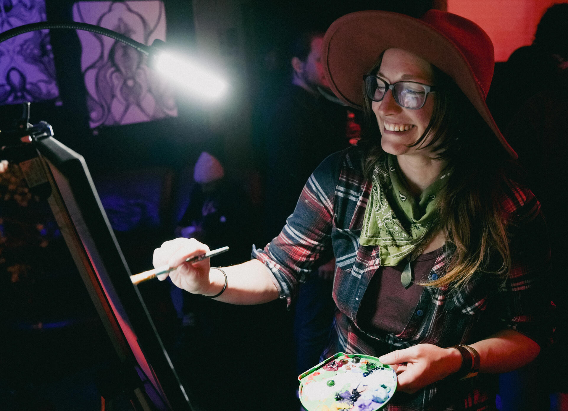 Providing a vibrant, accessible, judgment-free creative experience where people can relax, have fun, and create glowing works of art in a unique visual environment.