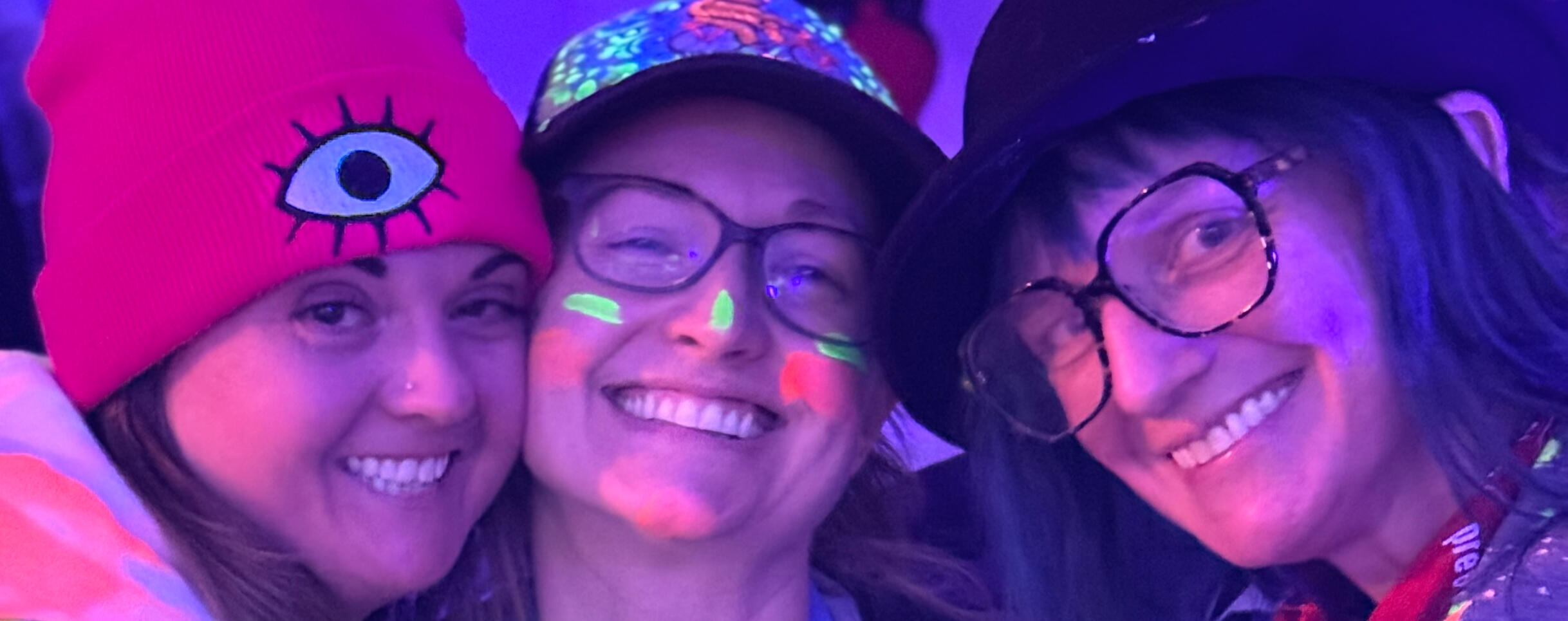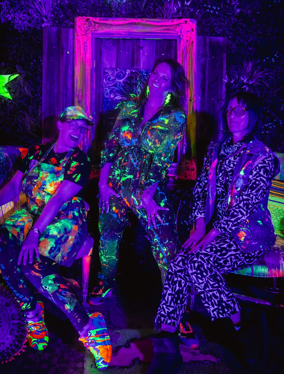 Blacklight Paint Party is not just your average painting class or workshop. It's a fully immersive, glowing, neon, fluorescent, paint-and-play experience in Portland, OR, where you can unleash your creativity in a whole new dimension!Started in 2025, founders (Artists Kindra Flavin, Chrissy Groh, and Corinne Dermond) met through local gigs, events, and shared vibes. They eventually combining their love of bright, bold art and joy in helping others find endless fun in painting to create a unique experience.They bring their fun, quirky, delightful personalities to create a non-judgmental, let-your-hair-down, playful environment for others to let their inner artist go to town!
